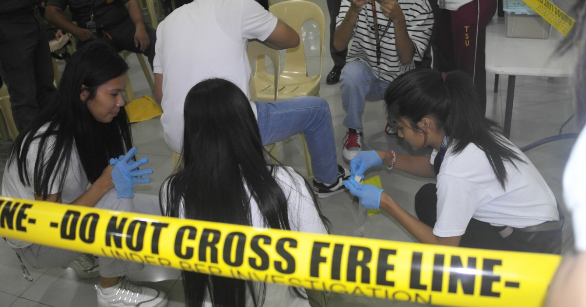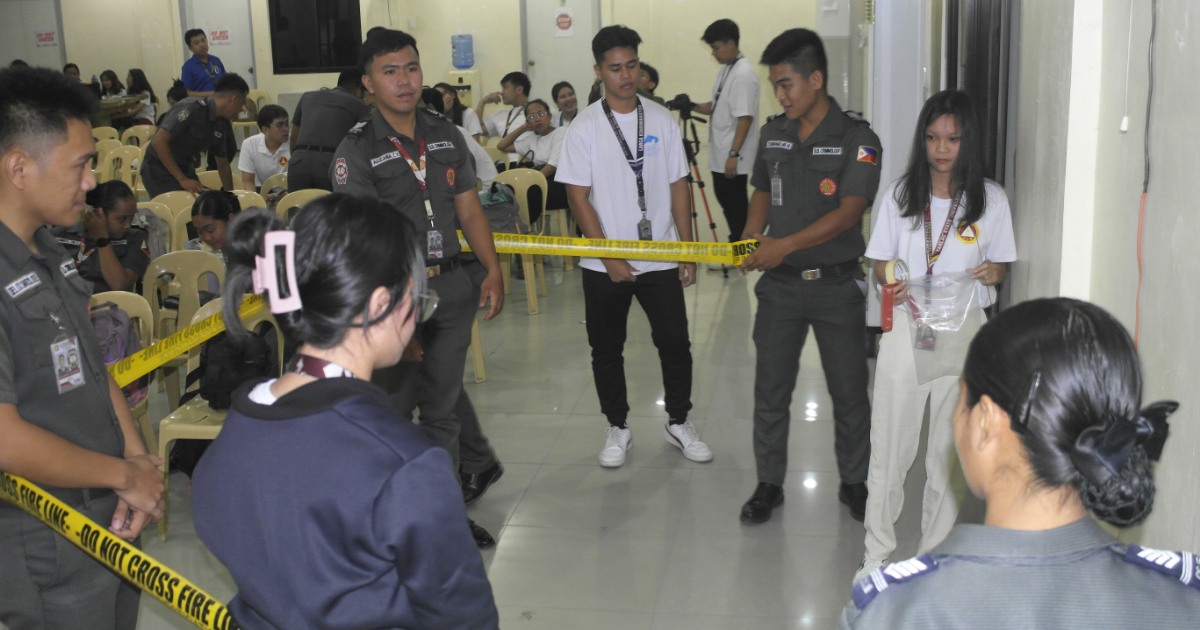 A practical exercise on crime scene investigation followed, where BFP Pura interns from Saint Rose College and BA Communication 2-1 EVE students were grouped into three teams. The interns led the activity, sharing their investigative approaches and field-based knowledge.