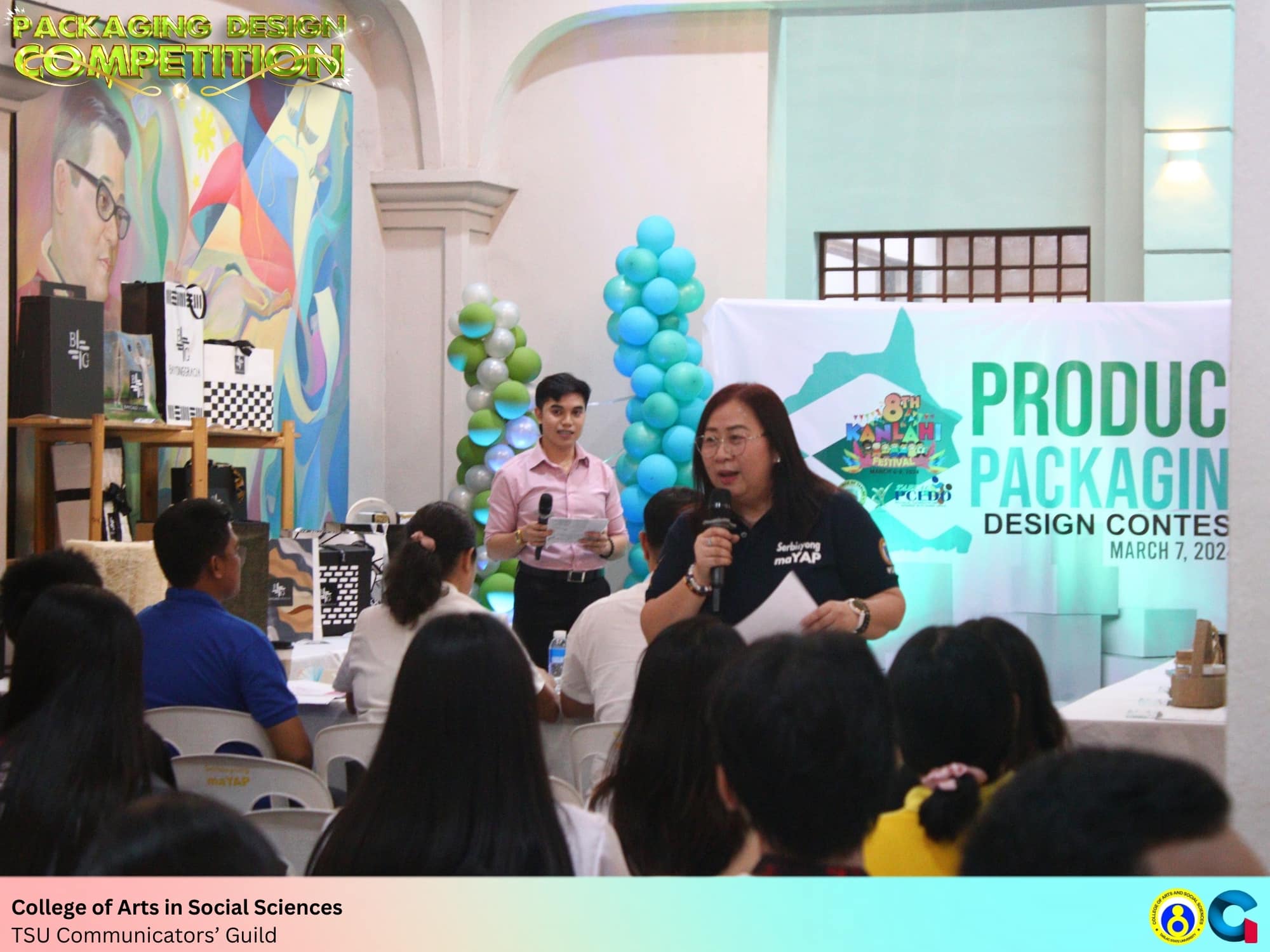 BackThe Tarlac State University (TSU) Communicators’ Guild participated in the 1st Packaging Design Competition organized by the Tarlac Provincial Cooperative and Enterprise Development Office (PCEDO) in celebration of the 8th Kanlahi Festival on March 7, 2024, held at the Provincial Capitol Building Lobby, San Vicente, Tarlac City.